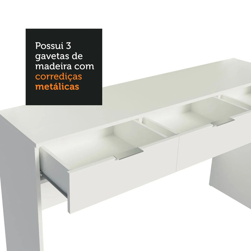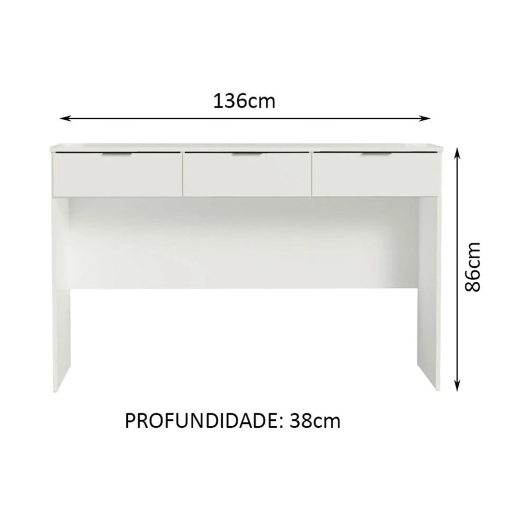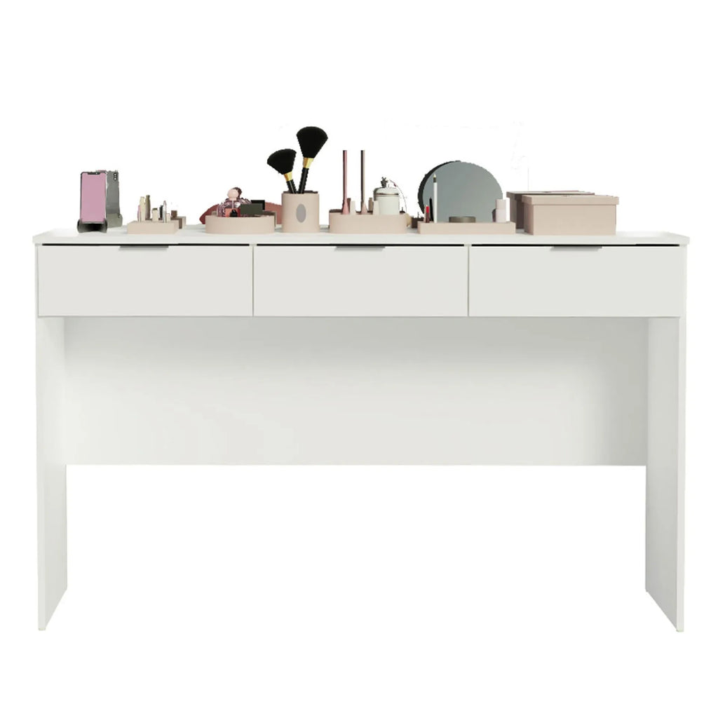 Produzida em madeira de reflorestamento e acabamento branco com pintura poliéster ecologicamente correta, ela une durabilidade, qualidade e consciência ambiental em cada detalhe. Suas 3 gavetas espaçosas permitem organizar maquiagens, acessórios e tudo o que você precisa para ter seu cantinho exclusivo sempre impecável.