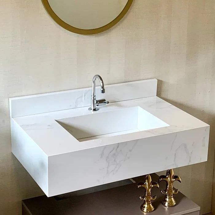 🛁 Bancada em Porcelanato com Cuba Esculpida – O Toque de Luxo que Faltava no Seu Banheiro