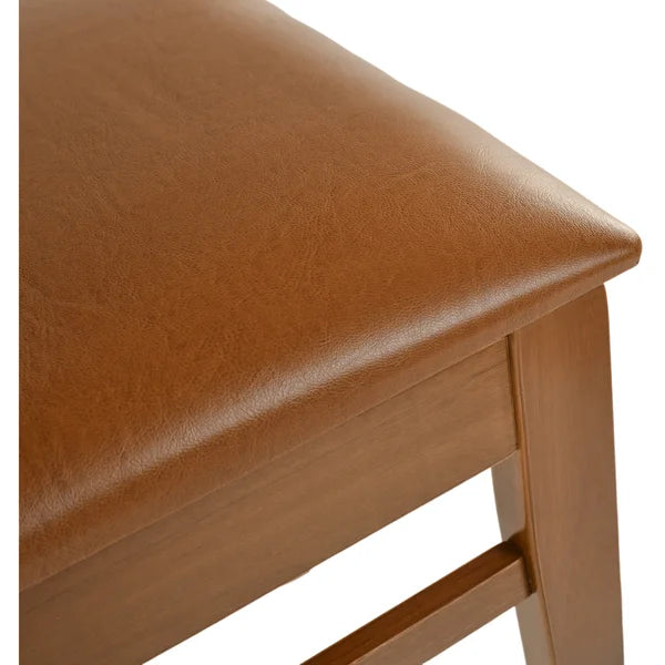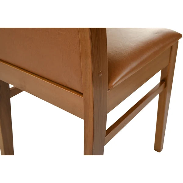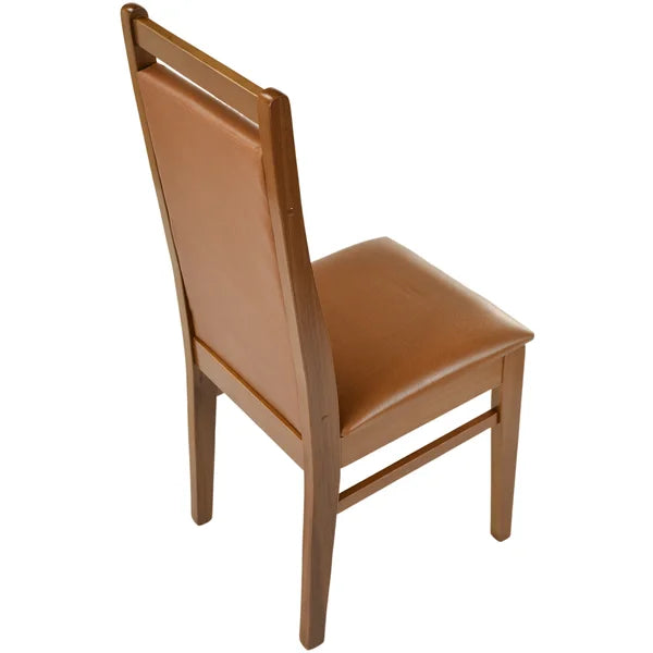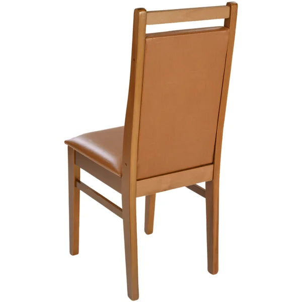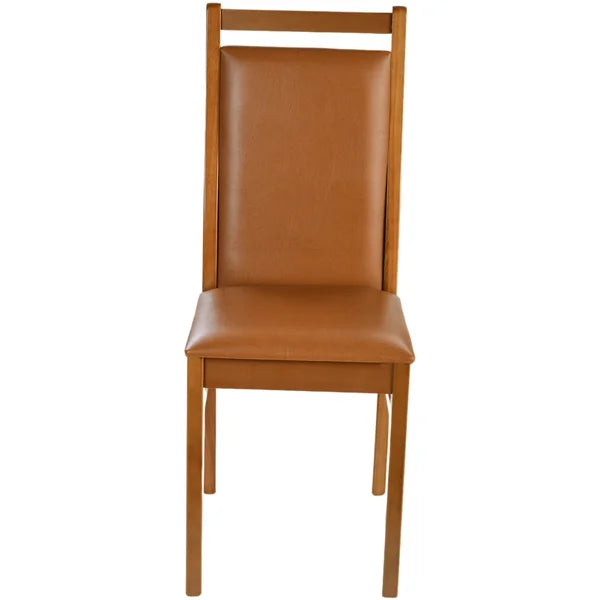 O encosto estofado garante bem-estar até nos encontros mais longos, enquanto o couro utilizado no acabamento traz facilidade na limpeza e um toque de requinte. Uma escolha perfeita para transformar sua sala de jantar em um espaço acolhedor, elegante e pronto para momentos memoráveis.