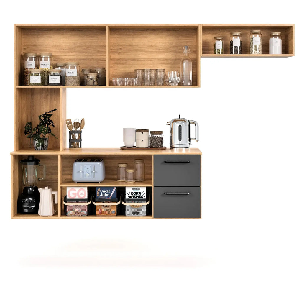Organização máxima para cozinhas práticas. O Armário de Cozinha Compacta com 7 Portas e 2 Gavetas mantém utensílios, mantimentos e panelas sempre no lugar, mesmo em espaços menores. Seu design inteligente e moderno otimiza cada canto, garantindo funcionalidade sem abrir mão da elegância.